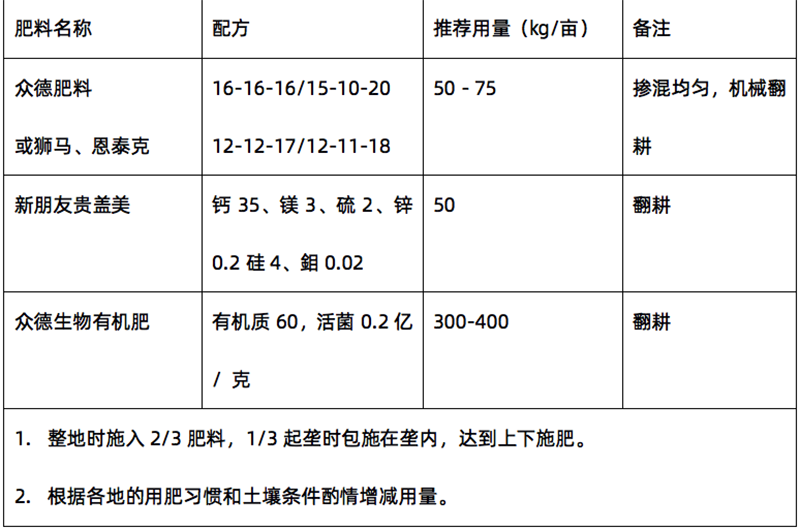 ?。?)推薦施肥套餐(根據(jù)目標產(chǎn)量、地域、品種、地力等適當調(diào)整)