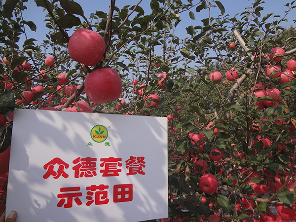唐師傅對于眾德集團(tuán)的專業(yè)和專注很是滿意,同意這3畝地都用眾德的方案,以觀后效。通過一年的努力,到解袋時(shí),唐師傅相當(dāng)高興,因?yàn)楣蔡琢?.8萬個(gè)袋的蘋果長的個(gè)大,表光靚,苦痘病和痘斑病極少,他說老果園長出了新果園的水平。